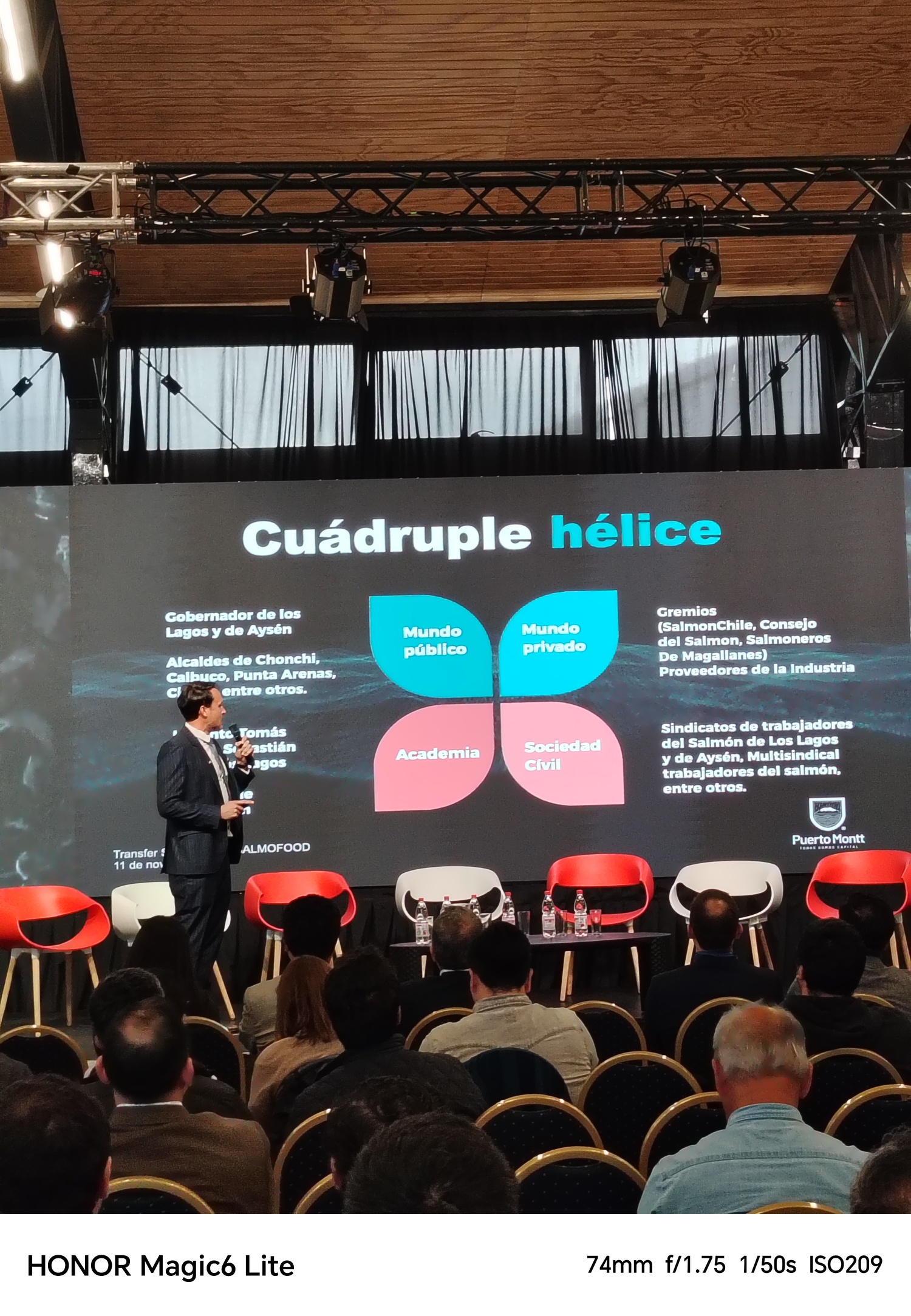 Durante la tarde, el bloque sobre indicadores y mercados incluyó elpanel de conversación“Oportunidades futuras de la industria chilena del salmón”, en el que participaron Rodrigo Wainraihgt, alcalde de Puerto Montt; Gino Manríquez, de AustralisSeafoods; Francisco Lobos, de Multi X; Óscar Gárate, de Sealand Aquaculture; Ignacio Briones, economista y exministro de Hacienda; y Pablo Albistur, de Salmones Camanchaca. Los panelistas coincidieron en la urgencia de construir una industria más moderna, competitiva y sostenible, capaz de superar las trabas regulatorias y avanzar en colaboración público-privada. Wainraihgt llamó a “creerse el cuento” y transformar el discurso en acción; Manríquez y Lobos enfatizaron la necesidad de un marco regulatorio predecible y eficiente; Gárate proyectó un crecimiento sostenido si se concretan las reformas pendientes; Briones advirtió sobre el riesgo de perder liderazgo global ante Noruega si Chile no acelera su desarrollo; y Albistur destacó el consenso alcanzado en torno a la importancia de comunicar con mayor fuerza el compromiso ambiental y social de las empresas.