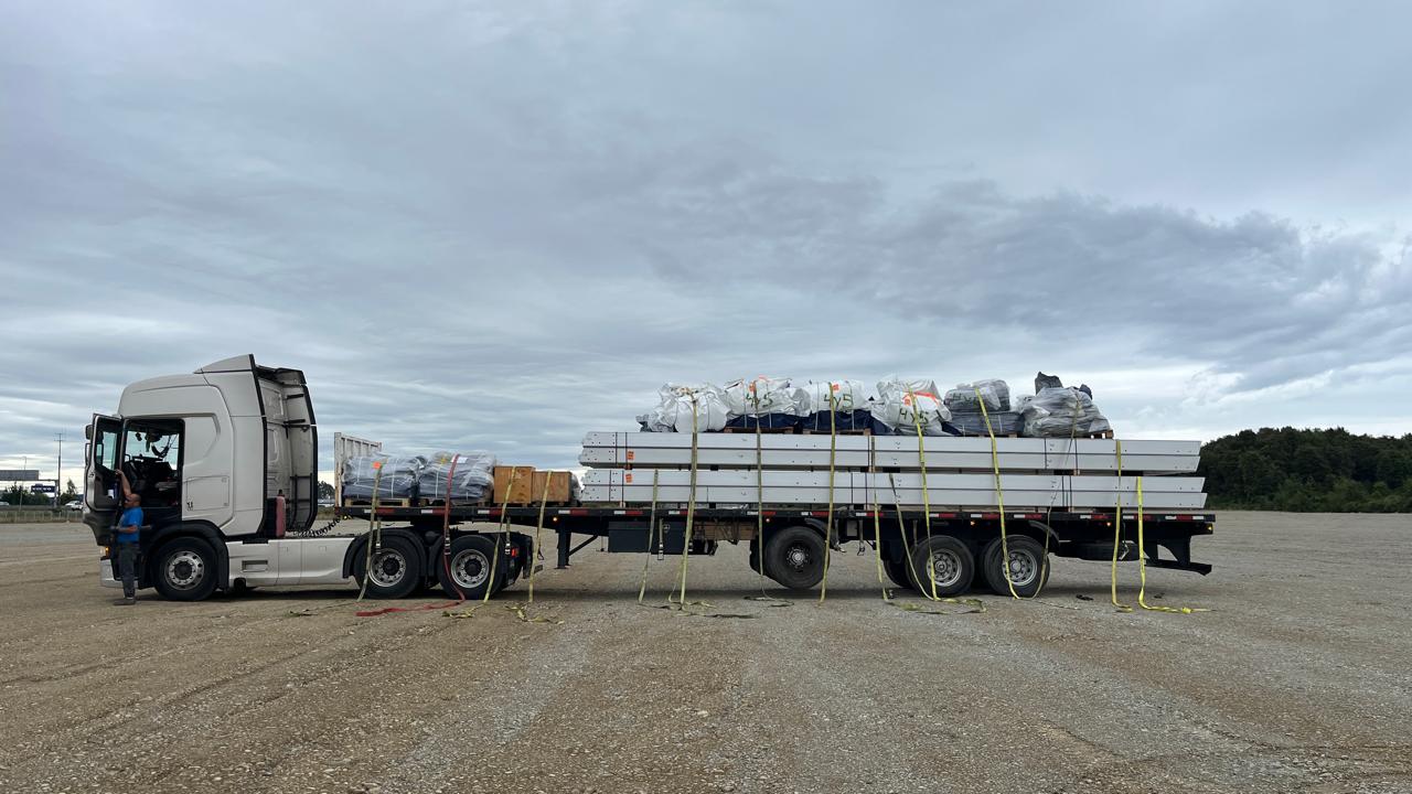 Esta semana, una delegación del área de operaciones de Aquasur viajó hasta la Región de Los Lagos con un cargamento de carpas, estructuras de aluminio y otros elementos cruciales para la infraestructura que alojará a la exhibición.